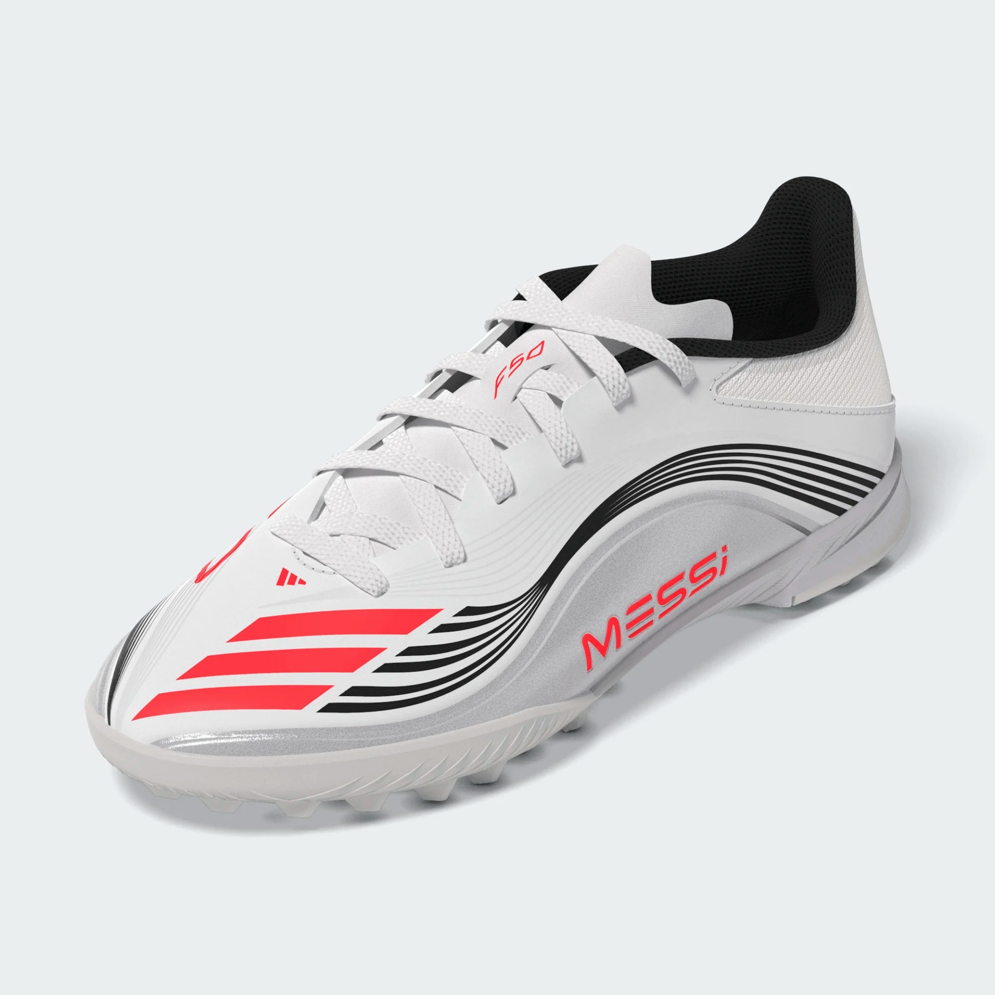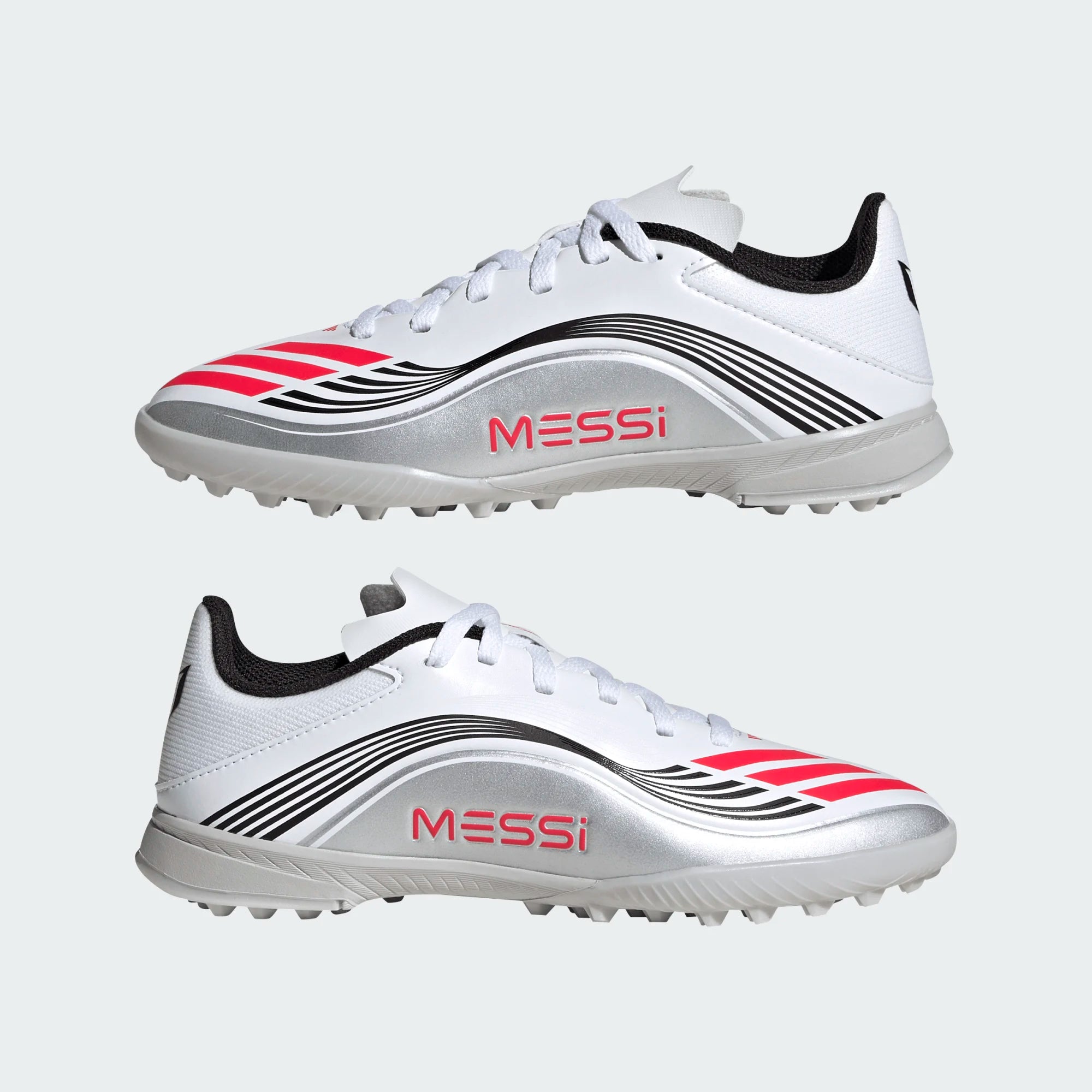 Part of a collection tuned to match Messi’s playing style, these F50s feature his iconic color inspiration — Cloud White, Lucid Red, and Silver Metallic — blending performance with standout looks.